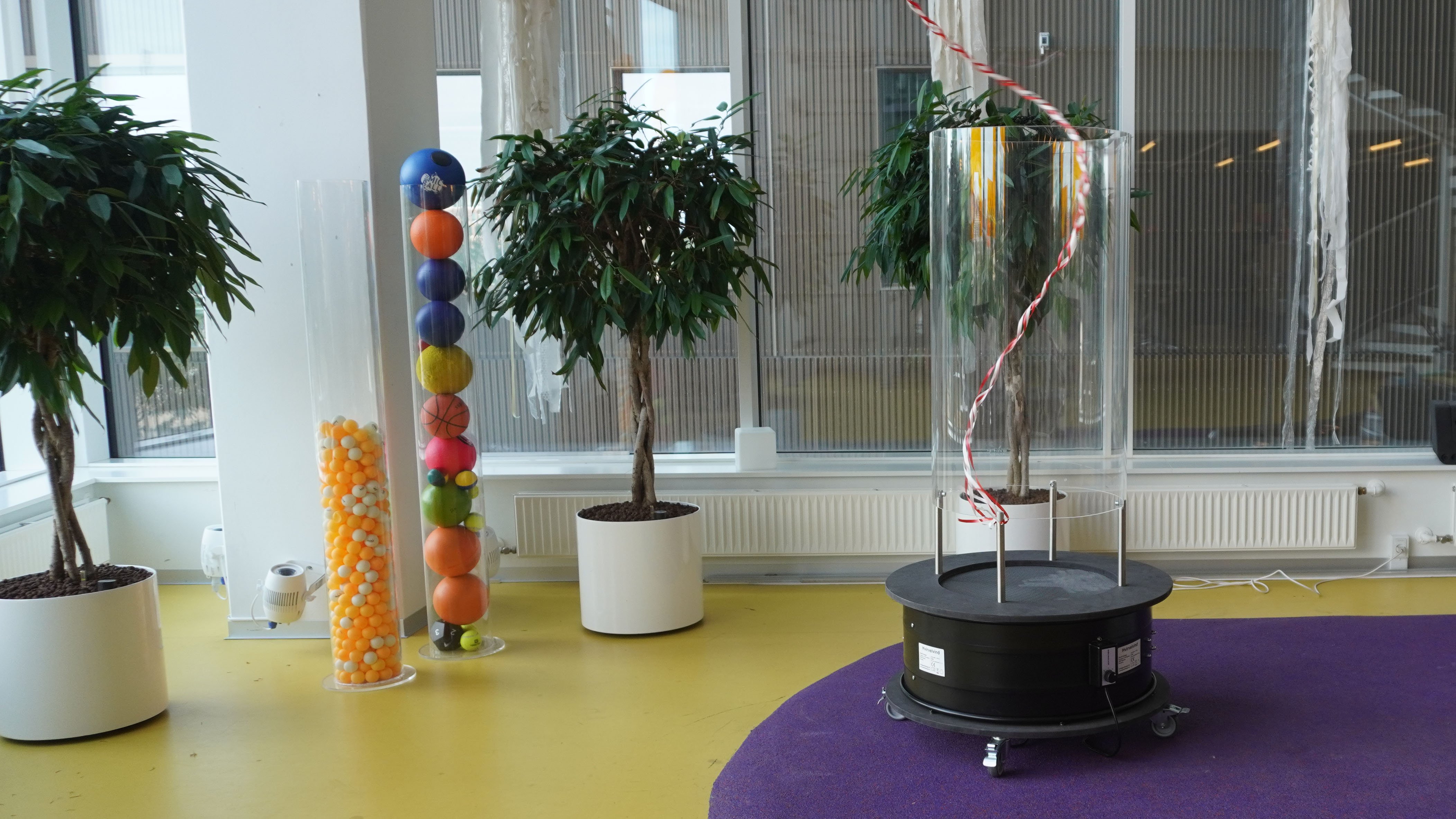 Som sidegevinst så skaber Hvirvelvind også ventilation i rummet, og hvis man stikker hovedet ind i luftstrømmen, så bliver man kølet af, hvilket er sjovt og dejligt for både børn og voksne.